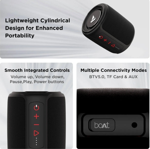 The boAt Stone 352 is a compact and rugged portable Bluetooth speaker designed for music enthusiasts seeking durability and quality sound.
