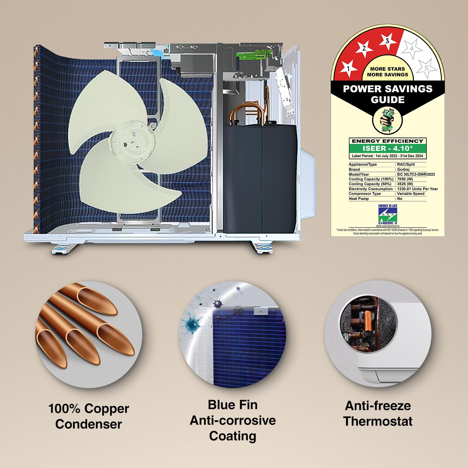 Godrej SIC 30LTC3-GWR – 2.5 Ton Inverter Split AC, 3-Star, 5-in-1 Cooling, Copper Condenser | Rs. 54,000.00